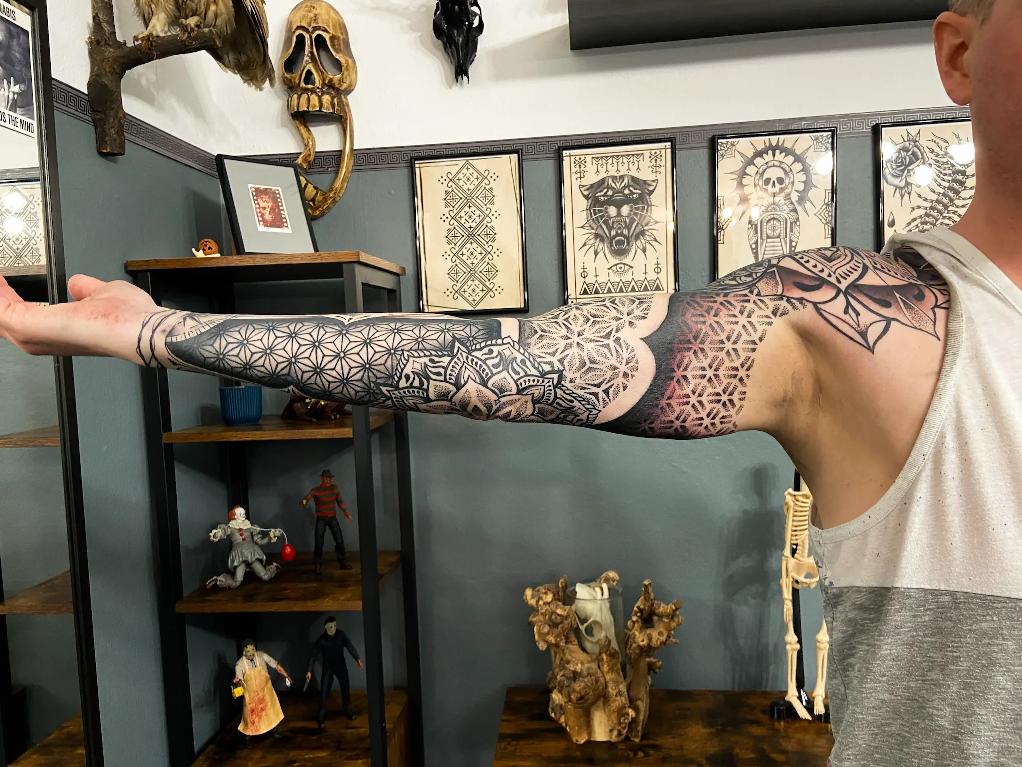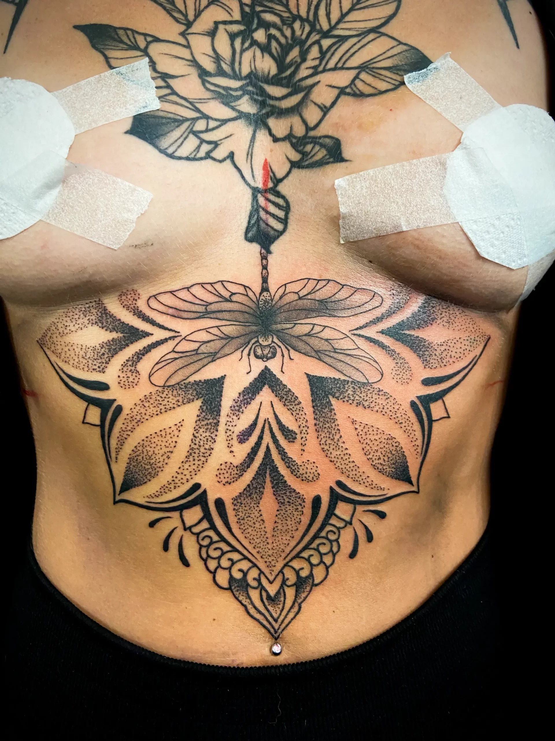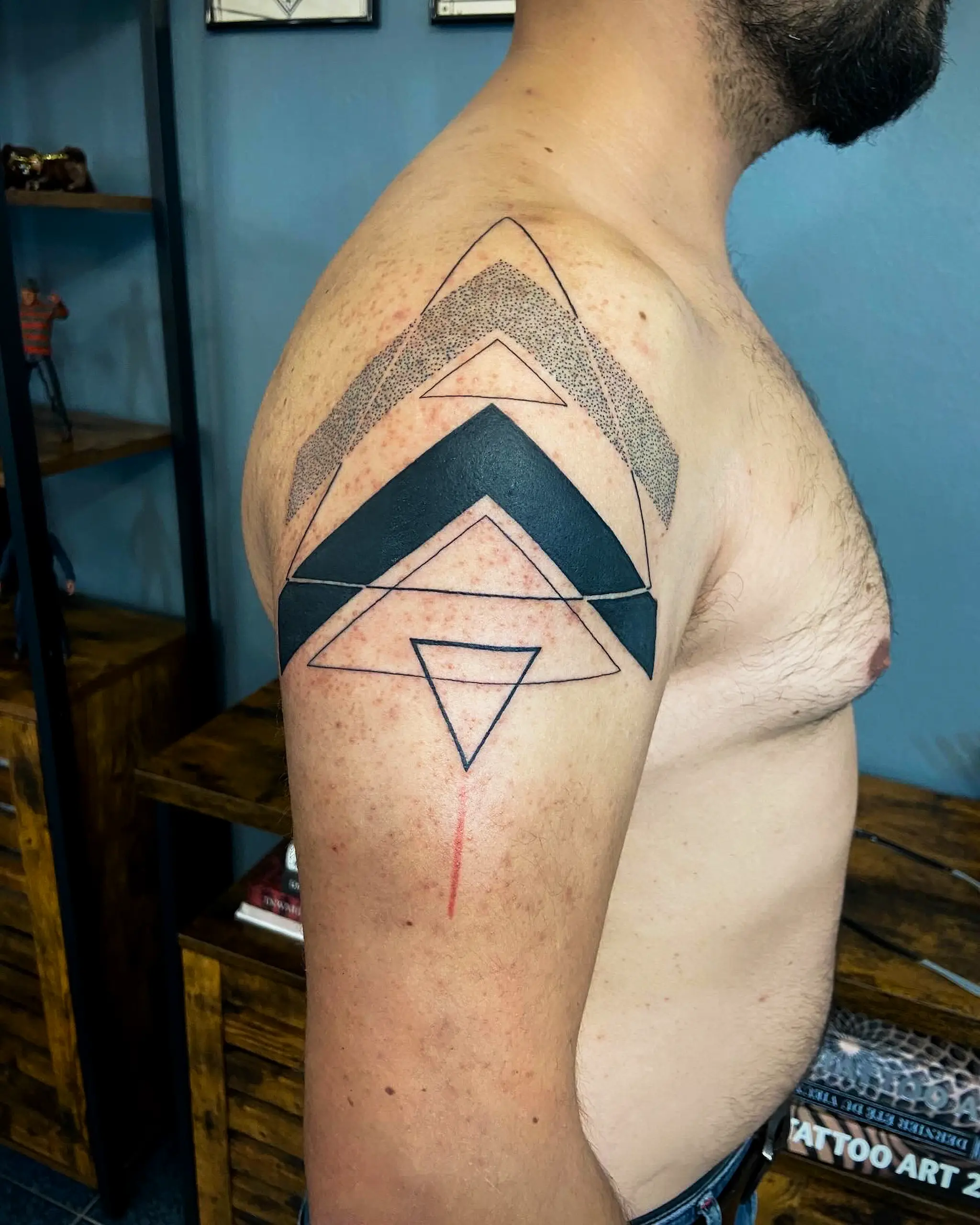 blackwork, dotwork, old school, trash polka, geo-realistic